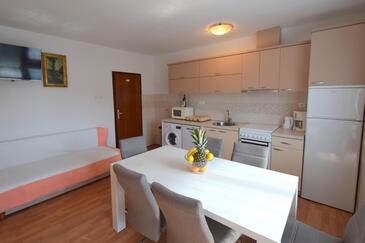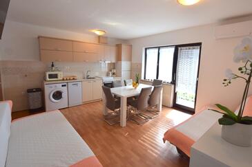 Studio bietet Platz für 3 Gäste. Die Betten sind in Schlafzimmern, die es 1 gibt, und in Wohnzimmer, innerhalb einer Gesamtfläche von 25m2, angeordnet. Die Gäste haben einen eigenen Balkon zur Verfügung, auf der sie in warmen Sommernächten genießen können. In der Unterkunftseinheit besteht die Möglichkeit des Mitbringens von Haustieren gegen Aufpreis.