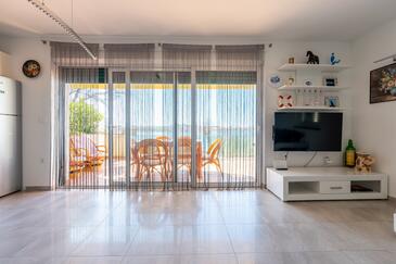 Ferienwohnung bietet Platz für 6 Gäste. Die Betten sind in Schlafzimmern, die es 2 gibt, und in Wohnzimmer, innerhalb einer Gesamtfläche von 85m2, angeordnet. Die Gäste haben eine eigene Terrasse zur Verfügung, auf der sie in warmen Sommernächten genießen können. Das Apartment bietet Meerblick. In der gebuchten Unterkunftseinheit zahlt man am Ort ein Depositum ( der Preis ist an der Internetseite angeführt ).