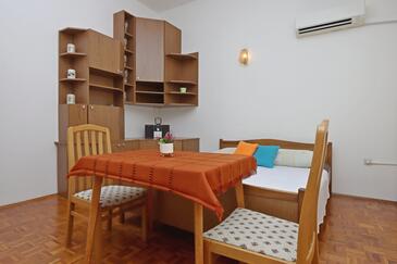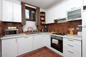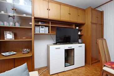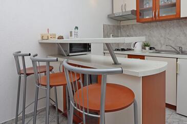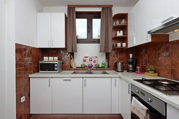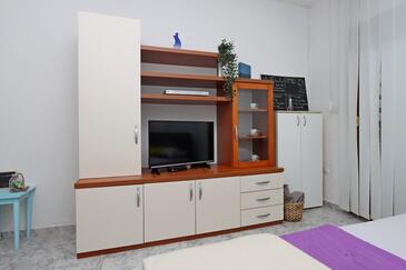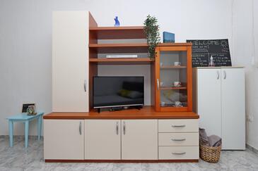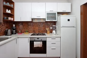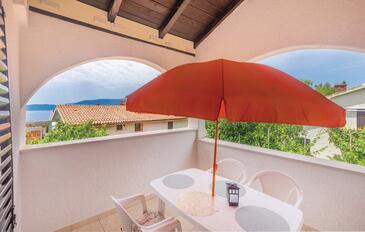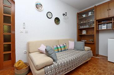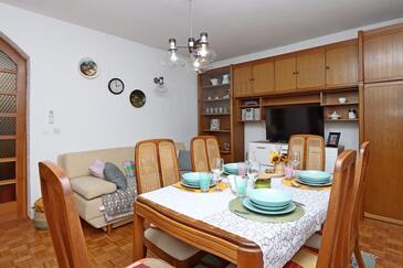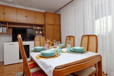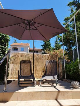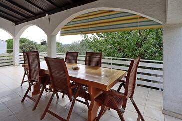 Ferienwohnung bietet Platz für 10 Gäste. Die Betten sind in Schlafzimmern, die es 5 gibt, innerhalb einer Gesamtfläche von 114m2, angeordnet. Die Gäste haben eine eigene Terrasse zur Verfügung, auf der sie in warmen Sommernächten genießen können. Das Apartment bietet Meerblick. Es ist erlaubt, Speisen auf dem Gemeinschafts-Grill vorzubereiten.