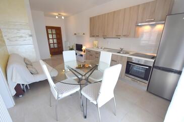 Ferienwohnung bietet Platz für 5 Gäste. Die Betten sind in Schlafzimmern, die es 2 gibt, und in Wohnzimmer, innerhalb einer Gesamtfläche von 53m2, angeordnet. Die Gäste haben eine eigene Terrasse zur Verfügung, auf der sie in warmen Sommernächten genießen können. Es ist erlaubt, Speisen auf dem Gemeinschafts-Grill vorzubereiten.