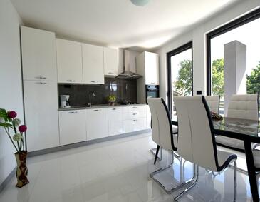 Ferienwohnung bietet Platz für 5 Gäste. Die Betten sind in Schlafzimmern, die es 2 gibt, und in Wohnzimmer, innerhalb einer Gesamtfläche von 80m2, angeordnet. Die Gäste haben eine eigene Terrasse zur Verfügung, auf der sie in warmen Sommernächten genießen können. Für vollen Genuss und Entspannung gibt es einen privaten Grill für Gäste dieser Unterkunft. In der Unterkunftseinheit besteht die Möglichkeit des Mitbringens von Haustieren gegen Aufpreis.