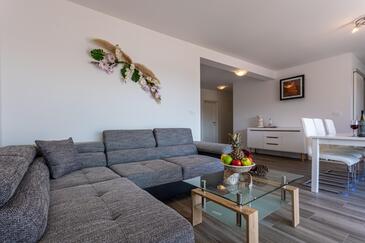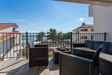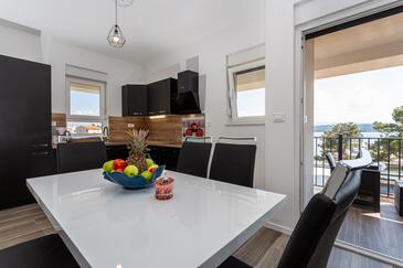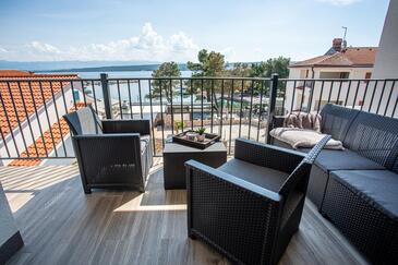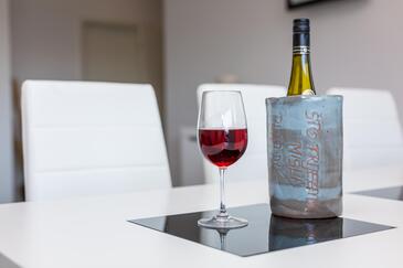 Ferienwohnung bietet Platz für 5 Gäste. Die Betten sind in Schlafzimmern, die es 2 gibt, und in Wohnzimmer, innerhalb einer Gesamtfläche von 76m2, angeordnet. Die Gäste haben eine eigene Terrasse zur Verfügung, auf der sie in warmen Sommernächten genießen können. Das Apartment bietet Meerblick. Es ist erlaubt, Speisen auf dem Gemeinschafts-Grill vorzubereiten. In der Unterkunftseinheit besteht die Möglichkeit des Mitbringens von Haustieren gegen Aufpreis.