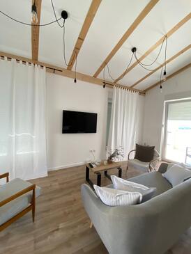 Ferienwohnung bietet Platz für 4 Gäste. Die Betten sind in Schlafzimmern, die es 2 gibt, innerhalb einer Gesamtfläche von 70m2, angeordnet. Die Gäste haben einen eigenen Balkon zur Verfügung, auf der sie in warmen Sommernächten genießen können. Das Apartment bietet Meerblick. Es ist erlaubt, Speisen auf dem Gemeinschafts-Grill vorzubereiten. In der Unterkunftseinheit besteht die Möglichkeit des Mitbringens von Haustieren gegen Aufpreis.