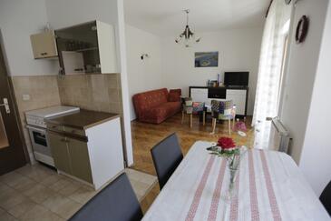 Ferienwohnung bietet Platz für 4 Gäste. Die Betten sind in Schlafzimmern, die es 2 gibt, innerhalb einer Gesamtfläche von 53m2, angeordnet. Die Gäste haben eine eigene Terrasse zur Verfügung, auf der sie in warmen Sommernächten genießen können. In der gebuchten Unterkunftseinheit zahlt man am Ort ein Depositum ( der Preis ist an der Internetseite angeführt ).