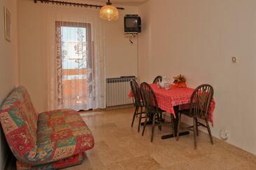 Ferienwohnung bietet Platz für 4 Gäste. Die Betten sind in Schlafzimmern, die es 1 gibt, und in Wohnzimmer, innerhalb einer Gesamtfläche von 25m2, angeordnet. Die Gäste haben eine eigene Terrasse zur Verfügung, auf der sie in warmen Sommernächten genießen können.