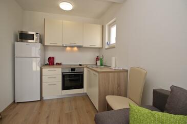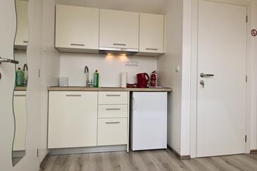 Ferienwohnung bietet Platz für 4 Gäste. Die Betten sind in Schlafzimmern, die es 1 gibt, und in Wohnzimmer, innerhalb einer Gesamtfläche von 28m2, angeordnet. Die Gäste haben einen eigenen Balkon zur Verfügung, auf der sie in warmen Sommernächten genießen können. Das Apartment bietet Meerblick. Es ist erlaubt, Speisen auf dem Gemeinschafts-Grill vorzubereiten.