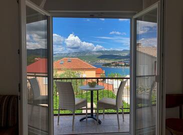 Ferienwohnung bietet Platz für 4 Gäste. Die Betten sind in Schlafzimmern, die es 2 gibt, innerhalb einer Gesamtfläche von 48m2, angeordnet. Die Gäste haben eine eigene Terrasse zur Verfügung, auf der sie in warmen Sommernächten genießen können. Das Apartment bietet Meerblick. Es ist erlaubt, Speisen auf dem Gemeinschafts-Grill vorzubereiten.