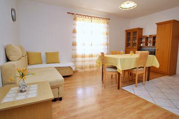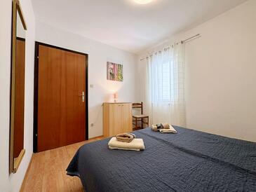 Ferienwohnung bietet Platz für 4 Gäste. Die Betten sind in Schlafzimmern, die es 2 gibt, innerhalb einer Gesamtfläche von 55m2, angeordnet. Die Gäste haben eine eigene Terrasse zur Verfügung, auf der sie in warmen Sommernächten genießen können. Es ist erlaubt, Speisen auf dem Gemeinschafts-Grill vorzubereiten.
