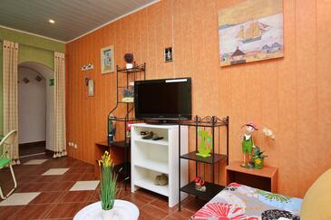 Ferienwohnung bietet Platz für 4 Gäste. Die Betten sind in Schlafzimmern, die es 2 gibt, innerhalb einer Gesamtfläche von 59m2, angeordnet. Die Gäste haben eine eigene Terrasse zur Verfügung, auf der sie in warmen Sommernächten genießen können. Das Apartment bietet Meerblick. Es ist erlaubt, Speisen auf dem Gemeinschafts-Grill vorzubereiten. In der Unterkunftseinheit besteht die Möglichkeit des Mitbringens von Haustieren gegen Aufpreis. Durch die Terrasse der gebuchten Unterkunftseinheit gehen auch andere Gäste oder Vermieter.