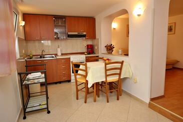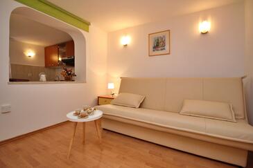 Ferienwohnung bietet Platz für 4 Gäste. Die Betten sind in Schlafzimmern, die es 1 gibt, und in Wohnzimmer, innerhalb einer Gesamtfläche von 47m2, angeordnet. Die Gäste haben eine eigene Terrasse zur Verfügung, auf der sie in warmen Sommernächten genießen können. Es ist erlaubt, Speisen auf dem Gemeinschafts-Grill vorzubereiten.