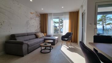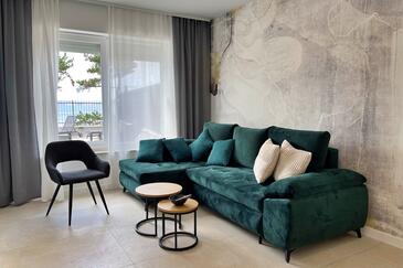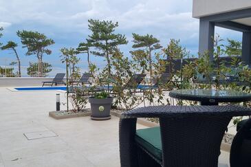 Ferienwohnung bietet Platz für 2 Gäste. Die Betten sind in Schlafzimmern, die es 1 gibt, innerhalb einer Gesamtfläche von 42m2, angeordnet. Die Gäste haben eine eigene Terrasse zur Verfügung, auf der sie in warmen Sommernächten genießen können. Das Apartment bietet Meerblick. Während ihres Aufenthalts können Gäste das gemeinsam zur Nutzung stehende Schwimmbad benutzen.