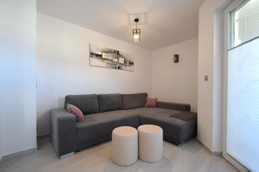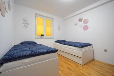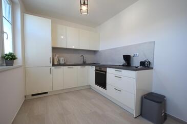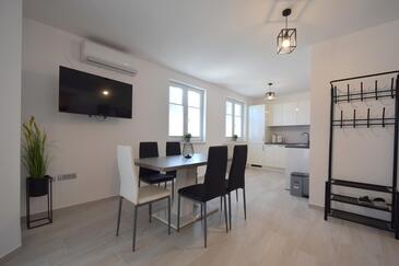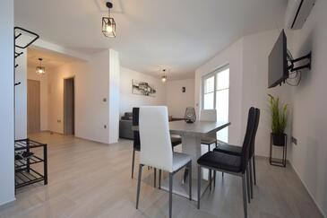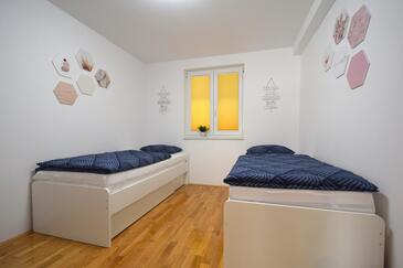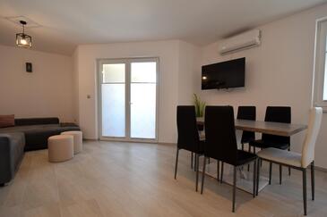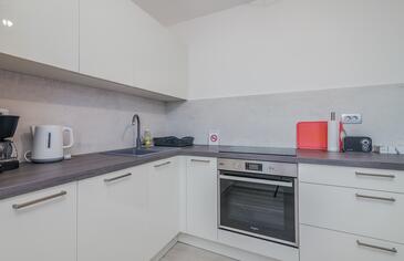 Ferienwohnung bietet Platz für 4 Gäste. Die Betten sind in Schlafzimmern, die es 2 gibt, innerhalb einer Gesamtfläche von 60m2, angeordnet. Die Gäste haben eine eigene Terrasse zur Verfügung, auf der sie in warmen Sommernächten genießen können. Es ist erlaubt, Speisen auf dem Gemeinschafts-Grill vorzubereiten.