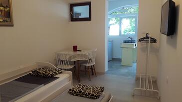 Ferienwohnung bietet Platz für 6 Gäste. Die Betten sind in Schlafzimmern, die es 2 gibt, und in Wohnzimmer, innerhalb einer Gesamtfläche von 40m2, angeordnet. Die Gäste haben eine eigene Terrasse zur Verfügung, auf der sie in warmen Sommernächten genießen können. Es ist erlaubt, Speisen auf dem Gemeinschafts-Grill vorzubereiten. In der Unterkunftseinheit besteht die Möglichkeit des Mitbringens von Haustieren gegen Aufpreis.