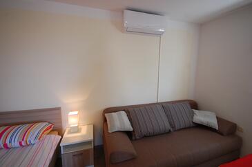 Studio bietet Platz für 3 Gäste. Die Betten sind in Wohnzimmer, innerhalb einer Gesamtfläche von 28m2, angeordnet. Die Gäste haben einen eigenen Balkon zur Verfügung, auf der sie in warmen Sommernächten genießen können.