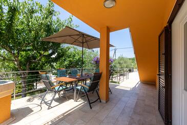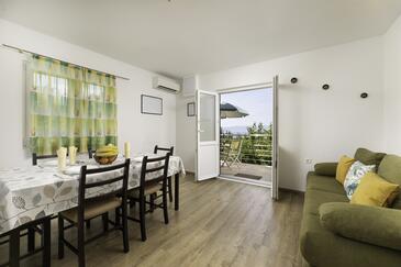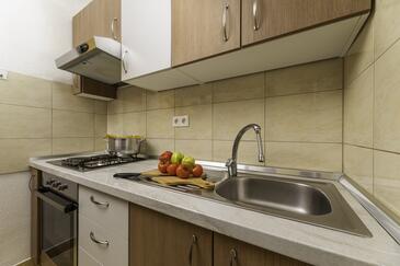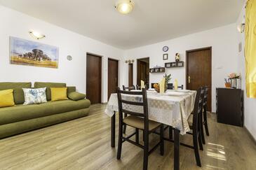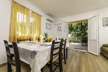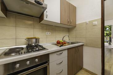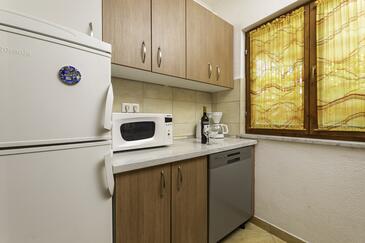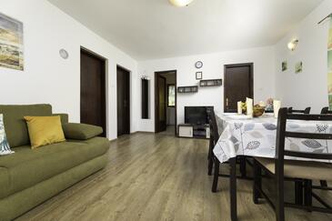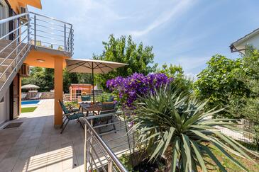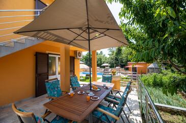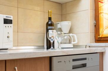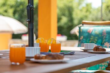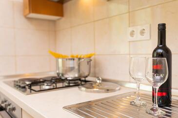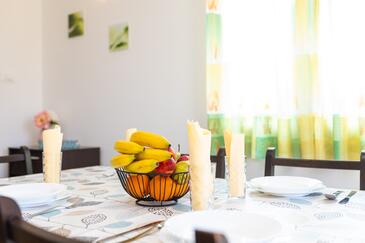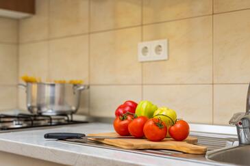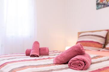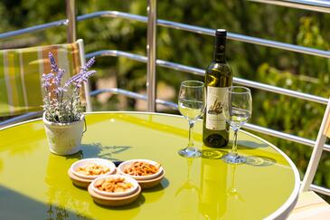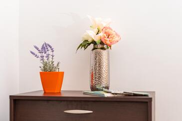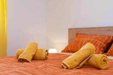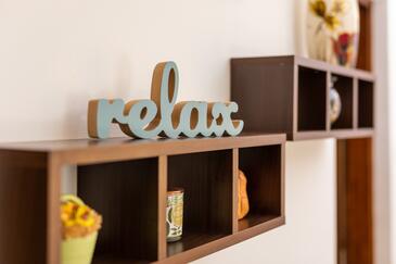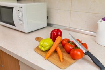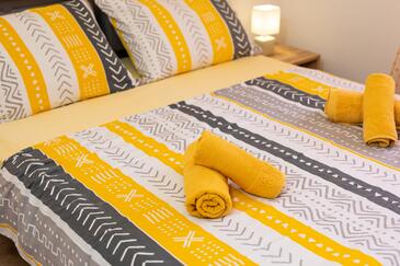 Ferienwohnung bietet Platz für 5 Gäste. Die Betten sind in Schlafzimmern, die es 2 gibt, und in Wohnzimmer, innerhalb einer Gesamtfläche von 50m2, angeordnet. Die Gäste haben eine eigene Terrasse zur Verfügung, auf der sie in warmen Sommernächten genießen können. Es ist erlaubt, Speisen auf dem Gemeinschafts-Grill vorzubereiten. Während ihres Aufenthalts können Gäste das gemeinsam zur Nutzung stehende Schwimmbad benutzen.