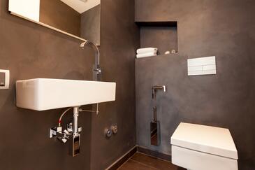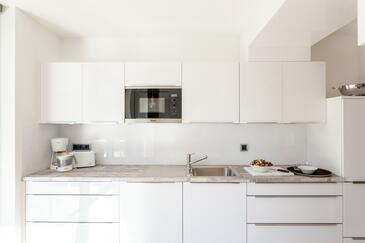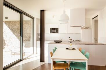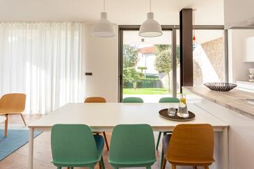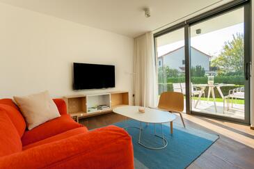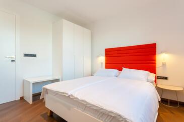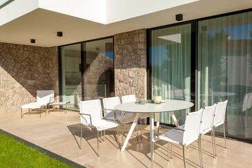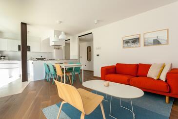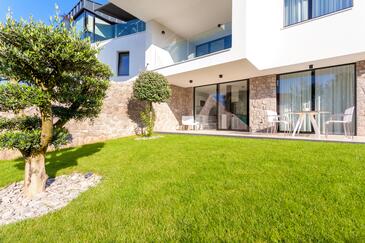 Ferienwohnung bietet Platz für 6 Gäste. Die Betten sind in Schlafzimmern, die es 3 gibt, innerhalb einer Gesamtfläche von 89m2, angeordnet. Die Gäste haben eine eigene Terrasse zur Verfügung, auf der sie in warmen Sommernächten genießen können. In der gebuchten Unterkunftseinheit zahlt man am Ort ein Depositum ( der Preis ist an der Internetseite angeführt ).