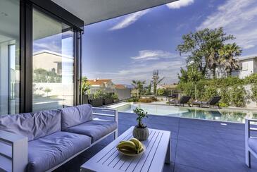 Haus bietet Platz für 8 Gäste. Die Betten sind in Schlafzimmern, die es 4 gibt, innerhalb einer Gesamtfläche von 179m2, angeordnet. Die Gäste haben eine eigene Terrasse zur Verfügung, auf der sie in warmen Sommernächten genießen können. Das Haus bietet Meerblick. Für vollen Genuss und Entspannung gibt es einen privaten Grill für Gäste dieser Unterkunft. Während ihres Aufenthalts können sich Gäste im privaten Schwimmbad entspannen. In der Unterkunftseinheit besteht die Möglichkeit des Mitbringens von Haustieren, und die Dienstleistung ist im Preis der Unterkunft enthalten. In der gebuchten Unterkunftseinheit zahlt man am Ort ein Depositum ( der Preis ist an der Internetseite angeführt ).