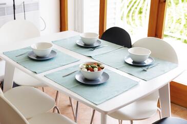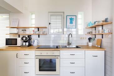 Ferienwohnung bietet Platz für 4 Gäste. Die Betten sind in Schlafzimmern, die es 2 gibt, innerhalb einer Gesamtfläche von 48m2, angeordnet. Die Gäste haben einen eigenen Balkon zur Verfügung, auf der sie in warmen Sommernächten genießen können. Das Apartment bietet Meerblick. Für vollen Genuss und Entspannung gibt es einen privaten Grill für Gäste dieser Unterkunft.