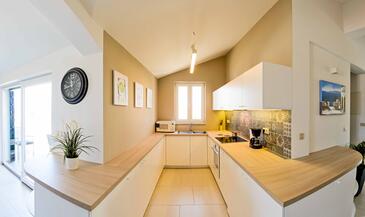 Ferienwohnung bietet Platz für 10 Gäste. Die Betten sind in Schlafzimmern, die es 3 gibt, und in Wohnzimmer, innerhalb einer Gesamtfläche von 93m2, angeordnet. Die Gäste haben eine eigene Terrasse zur Verfügung, auf der sie in warmen Sommernächten genießen können. Das Apartment bietet Meerblick. In der gebuchten Unterkunftseinheit zahlt man am Ort ein Depositum ( der Preis ist an der Internetseite angeführt ).