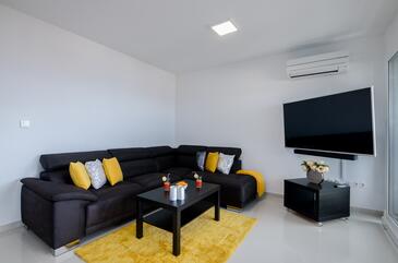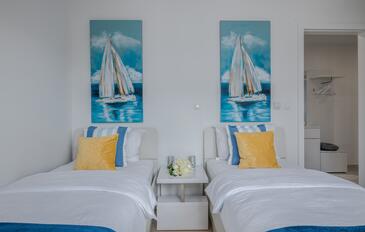 Ferienwohnung bietet Platz für 4 Gäste. Die Betten sind in Schlafzimmern, die es 2 gibt, innerhalb einer Gesamtfläche von 68m2, angeordnet. Die Gäste haben eine eigene Terrasse zur Verfügung, auf der sie in warmen Sommernächten genießen können. Das Apartment bietet Meerblick.