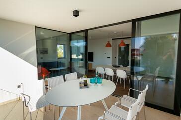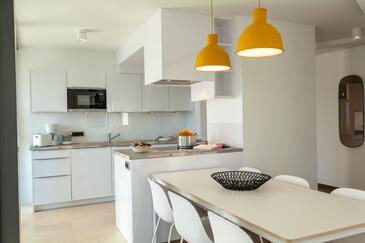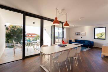 Ferienwohnung bietet Platz für 6 Gäste. Die Betten sind in Schlafzimmern, die es 3 gibt, innerhalb einer Gesamtfläche von 81m2, angeordnet. Die Gäste haben eine eigene Terrasse zur Verfügung, auf der sie in warmen Sommernächten genießen können. In der gebuchten Unterkunftseinheit zahlt man am Ort ein Depositum ( der Preis ist an der Internetseite angeführt ).
