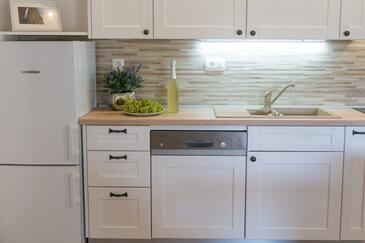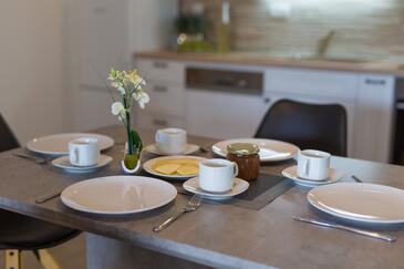 Haus bietet Platz für 5 Gäste. Die Betten sind in Schlafzimmern, die es 2 gibt, und in Wohnzimmer, innerhalb einer Gesamtfläche von 81m2, angeordnet. Die Gäste haben eine eigene Terrasse zur Verfügung, auf der sie in warmen Sommernächten genießen können.