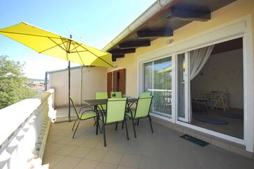 Ferienwohnung bietet Platz für 4 Gäste. Die Betten sind in Schlafzimmern, die es 2 gibt, innerhalb einer Gesamtfläche von 42m2, angeordnet. Die Gäste haben eine eigene Terrasse zur Verfügung, auf der sie in warmen Sommernächten genießen können.