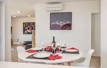 Ferienwohnung bietet Platz für 6 Gäste. Die Betten sind in Schlafzimmern, die es 2 gibt, und in Wohnzimmer, innerhalb einer Gesamtfläche von 75m2, angeordnet. Die Gäste haben eine eigene Terrasse zur Verfügung, auf der sie in warmen Sommernächten genießen können. Es ist erlaubt, Speisen auf dem Gemeinschafts-Grill vorzubereiten. Während ihres Aufenthalts können Gäste das gemeinsam zur Nutzung stehende Schwimmbad benutzen. In der gebuchten Unterkunftseinheit zahlt man am Ort ein Depositum ( der Preis ist an der Internetseite angeführt ).