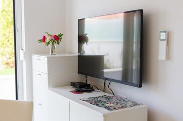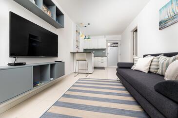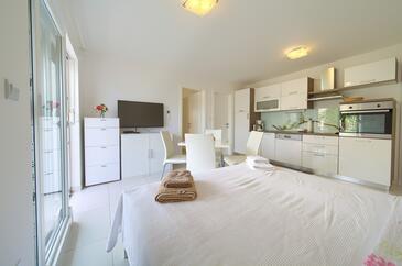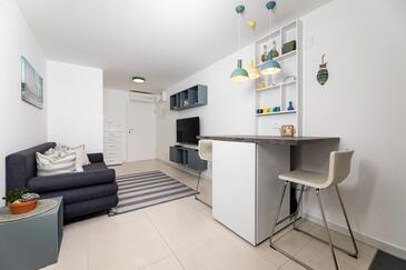 Ferienwohnung bietet Platz für 4 Gäste. Die Betten sind in Schlafzimmern, die es 1 gibt, und in Wohnzimmer, innerhalb einer Gesamtfläche von 35m2, angeordnet. Die Gäste haben eine eigene Terrasse zur Verfügung, auf der sie in warmen Sommernächten genießen können.