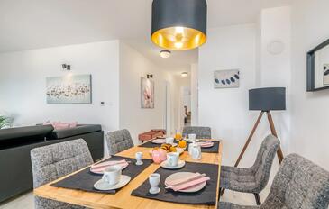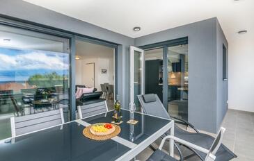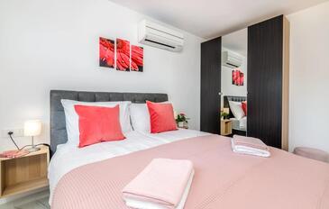 Ferienwohnung bietet Platz für 4 Gäste. Die Betten sind in Schlafzimmern, die es 2 gibt, innerhalb einer Gesamtfläche von 80m2, angeordnet. Die Gäste haben eine eigene Terrasse zur Verfügung, auf der sie in warmen Sommernächten genießen können. Das Apartment bietet Meerblick.