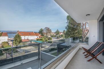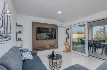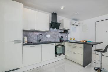 Ferienwohnung bietet Platz für 4 Gäste. Die Betten sind in Schlafzimmern, die es 2 gibt, innerhalb einer Gesamtfläche von 80m2, angeordnet. Die Gäste haben eine eigene Terrasse zur Verfügung, auf der sie in warmen Sommernächten genießen können. Das Apartment bietet Meerblick.