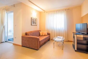 Ferienwohnung bietet Platz für 2 Gäste. Die Betten sind in Schlafzimmern, die es 1 gibt, innerhalb einer Gesamtfläche von 50m2, angeordnet. Die Gäste haben einen eigenen Balkon zur Verfügung, auf der sie in warmen Sommernächten genießen können. Das Apartment bietet Meerblick.