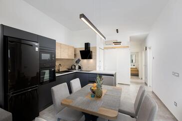 Ferienwohnung bietet Platz für 4 Gäste. Die Betten sind in Schlafzimmern, die es 2 gibt, innerhalb einer Gesamtfläche von 63m2, angeordnet. Die Gäste haben eine eigene Terrasse zur Verfügung, auf der sie in warmen Sommernächten genießen können.