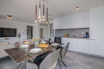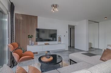 Ferienwohnung bietet Platz für 4 Gäste. Die Betten sind in Schlafzimmern, die es 2 gibt, innerhalb einer Gesamtfläche von 70m2, angeordnet. Die Gäste haben einen eigenen Balkon zur Verfügung, auf der sie in warmen Sommernächten genießen können.