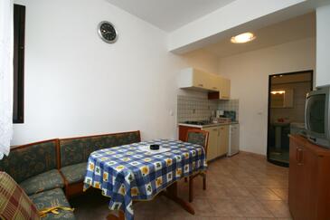 Ferienwohnung bietet Platz für 4 Gäste. Die Betten sind in Schlafzimmern, die es 1 gibt, und in Esszimmer, innerhalb einer Gesamtfläche von 33m2, angeordnet. Die Gäste haben einen eigenen Balkon zur Verfügung, auf der sie in warmen Sommernächten genießen können. Das Apartment bietet Meerblick. Es ist erlaubt, Speisen auf dem Gemeinschafts-Grill vorzubereiten. Die reservierte Unterkunftseinheit verfügt über einen gemeinsame Terrasse.