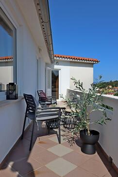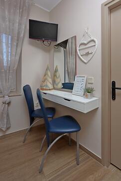 Ferienwohnung bietet Platz für 6 Gäste. Die Betten sind in Schlafzimmern, die es 2 gibt, innerhalb einer Gesamtfläche von 102m2, angeordnet. Die Gäste haben eine eigene Terrasse zur Verfügung, auf der sie in warmen Sommernächten genießen können. Das Apartment bietet Meerblick. Für vollen Genuss und Entspannung gibt es einen privaten Grill für Gäste dieser Unterkunft.