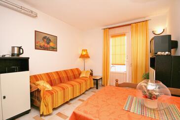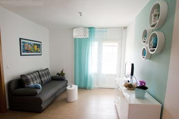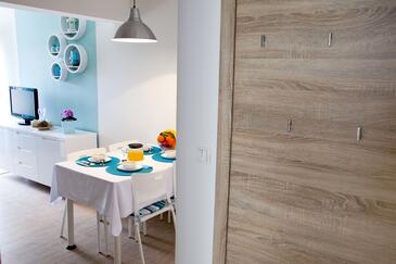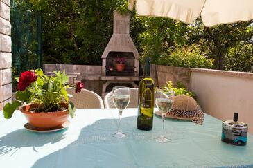 Ferienwohnung bietet Platz für 5 Gäste. Die Betten sind in Schlafzimmern, die es 2 gibt, und in Wohnzimmer, innerhalb einer Gesamtfläche von 44m2, angeordnet. Die Gäste haben eine eigene Terrasse zur Verfügung, auf der sie in warmen Sommernächten genießen können. Das Apartment bietet Meerblick. Für vollen Genuss und Entspannung gibt es einen privaten Grill für Gäste dieser Unterkunft.