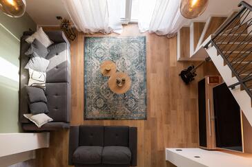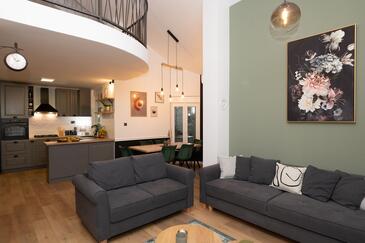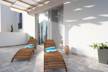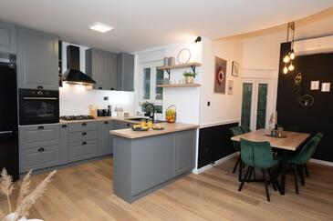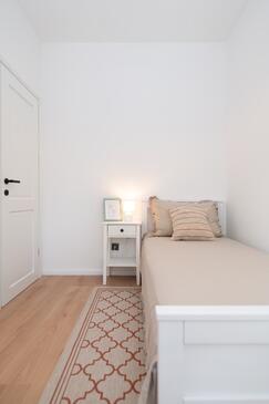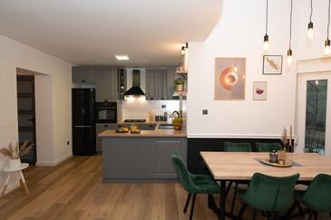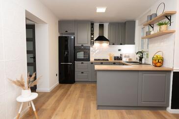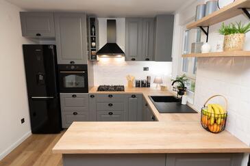 Haus bietet Platz für 6 Gäste. Die Betten sind in Schlafzimmern, die es 3 gibt, und in Wohnzimmer, innerhalb einer Gesamtfläche von 88m2, angeordnet. Die Gäste haben eine eigene Terrasse zur Verfügung, auf der sie in warmen Sommernächten genießen können. Es ist erlaubt, Speisen auf dem Gemeinschafts-Grill vorzubereiten.