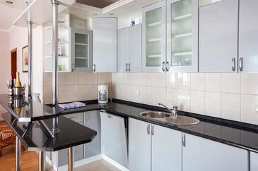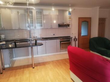 Ferienwohnung bietet Platz für 6 Gäste. Die Betten sind in Schlafzimmern, die es 2 gibt, und in Wohnzimmer, innerhalb einer Gesamtfläche von 69m2, angeordnet. Die Gäste haben eine eigene Terrasse zur Verfügung, auf der sie in warmen Sommernächten genießen können. Für vollen Genuss und Entspannung gibt es einen privaten Grill für Gäste dieser Unterkunft.