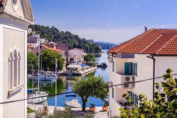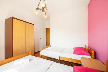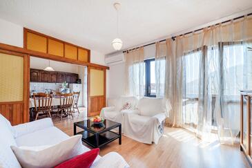 Ferienwohnung bietet Platz für 8 Gäste. Die Betten sind in Schlafzimmern, die es 4 gibt, innerhalb einer Gesamtfläche von 92m2, angeordnet. Die Gäste haben einen eigenen Balkon zur Verfügung, auf der sie in warmen Sommernächten genießen können. Das Apartment bietet Meerblick. Es ist erlaubt, Speisen auf dem Gemeinschafts-Grill vorzubereiten.