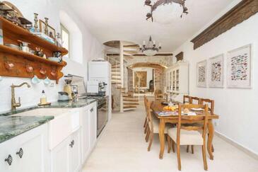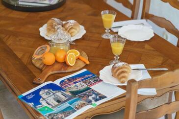 Haus bietet Platz für 8 Gäste. Die Betten sind in Schlafzimmern, die es 4 gibt, innerhalb einer Gesamtfläche von 191m2, angeordnet. Die Gäste haben eine eigene Terrasse zur Verfügung, auf der sie in warmen Sommernächten genießen können. Das Haus bietet Meerblick. Für vollen Genuss und Entspannung gibt es einen privaten Grill für Gäste dieser Unterkunft.