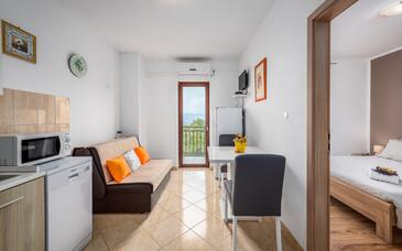 Ferienwohnung bietet Platz für 5 Gäste. Die Betten sind in Schlafzimmern, die es 2 gibt, und in Wohnzimmer, innerhalb einer Gesamtfläche von 49m2, angeordnet. Die Gäste haben einen eigenen Balkon zur Verfügung, auf der sie in warmen Sommernächten genießen können. Das Apartment bietet Meerblick. Es ist erlaubt, Speisen auf dem Gemeinschafts-Grill vorzubereiten. Während ihres Aufenthalts können Gäste das gemeinsam zur Nutzung stehende Schwimmbad benutzen. In der Unterkunftseinheit besteht die Möglichkeit des Mitbringens von Haustieren gegen Aufpreis.