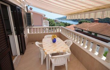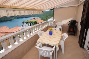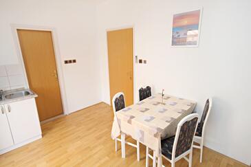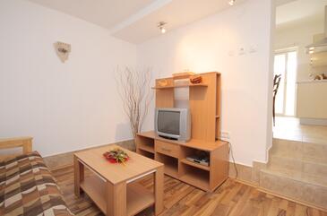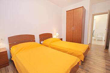 Ferienwohnung bietet Platz für 4 Gäste. Die Betten sind in Schlafzimmern, die es 2 gibt, innerhalb einer Gesamtfläche von 53m2, angeordnet. Die Gäste haben eine eigene Terrasse zur Verfügung, auf der sie in warmen Sommernächten genießen können. Das Apartment bietet Meerblick. Es ist erlaubt, Speisen auf dem Gemeinschafts-Grill vorzubereiten.