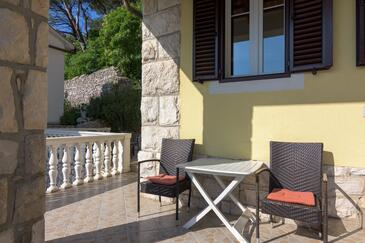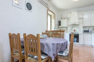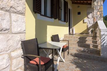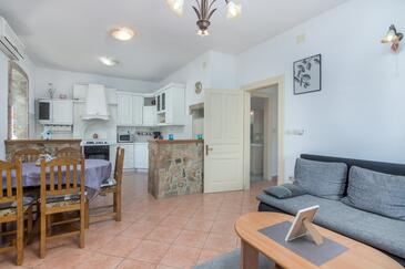 Haus bietet Platz für 5 Gäste. Die Betten sind in Schlafzimmern, die es 2 gibt, und in Wohnzimmer, innerhalb einer Gesamtfläche von 64m2, angeordnet. Die Gäste haben eine eigene Terrasse zur Verfügung, auf der sie in warmen Sommernächten genießen können. Das Haus bietet Meerblick. Es ist erlaubt, Speisen auf dem Gemeinschafts-Grill vorzubereiten.
