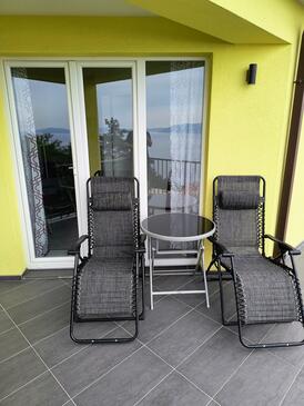 Ferienwohnung bietet Platz für 4 Gäste. Die Betten sind in Schlafzimmern, die es 1 gibt, und in Wohnzimmer, innerhalb einer Gesamtfläche von 34m2, angeordnet. Die Gäste haben eine eigene Terrasse zur Verfügung, auf der sie in warmen Sommernächten genießen können. Das Apartment bietet Meerblick. Es ist erlaubt, Speisen auf dem Gemeinschafts-Grill vorzubereiten.