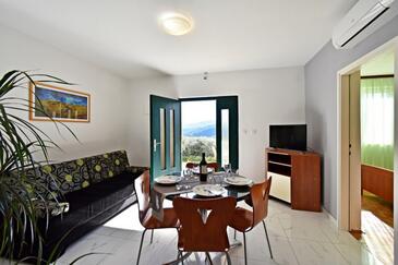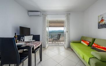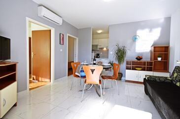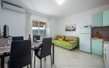 Ferienwohnung bietet Platz für 6 Gäste. Die Betten sind in Schlafzimmern, die es 2 gibt, und in Wohnzimmer, innerhalb einer Gesamtfläche von 46m2, angeordnet. Die Gäste haben eine eigene Terrasse zur Verfügung, auf der sie in warmen Sommernächten genießen können. Das Apartment bietet Meerblick. Es ist erlaubt, Speisen auf dem Gemeinschafts-Grill vorzubereiten. In der Unterkunftseinheit besteht die Möglichkeit des Mitbringens von Haustieren gegen Aufpreis.
