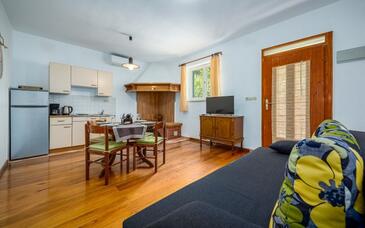 Ferienwohnung bietet Platz für 4 Gäste. Die Betten sind in Schlafzimmern, die es 1 gibt, und in Esszimmer, innerhalb einer Gesamtfläche von 34m2, angeordnet. Die Gäste haben einen eigenen Balkon zur Verfügung, auf der sie in warmen Sommernächten genießen können. Es ist erlaubt, Speisen auf dem Gemeinschafts-Grill vorzubereiten. In der Unterkunftseinheit besteht die Möglichkeit des Mitbringens von Haustieren gegen Aufpreis.