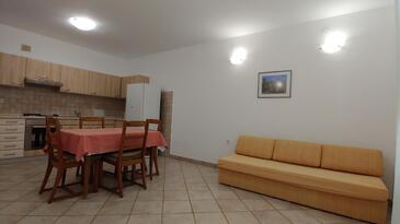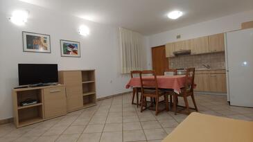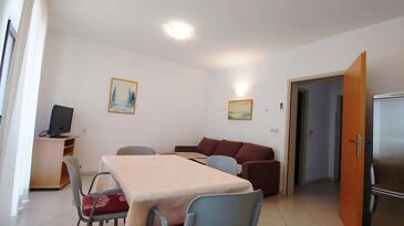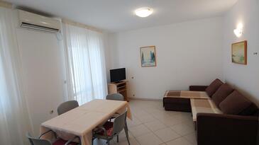 Ferienwohnung bietet Platz für 5 Gäste. Die Betten sind in Schlafzimmern, die es 2 gibt, und in Wohnzimmer, innerhalb einer Gesamtfläche von 57m2, angeordnet. Die Gäste haben eine eigene Terrasse zur Verfügung, auf der sie in warmen Sommernächten genießen können. Es ist erlaubt, Speisen auf dem Gemeinschafts-Grill vorzubereiten. In der Unterkunftseinheit besteht die Möglichkeit des Mitbringens von Haustieren gegen Aufpreis.