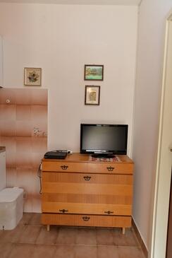 Ferienwohnung bietet Platz für 4 Gäste. Die Betten sind in Schlafzimmern, die es 2 gibt, innerhalb einer Gesamtfläche von 47m2, angeordnet. Die Gäste haben eine eigene Terrasse zur Verfügung, auf der sie in warmen Sommernächten genießen können. Das Apartment bietet Meerblick. Durch die Terrasse der gebuchten Unterkunftseinheit gehen auch andere Gäste oder Vermieter.