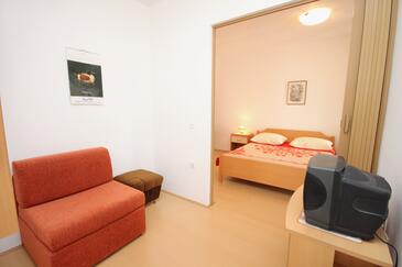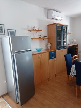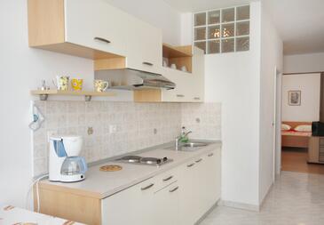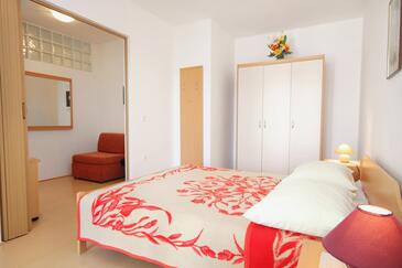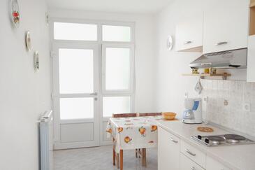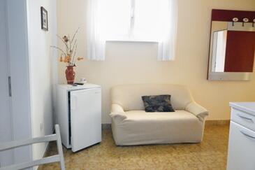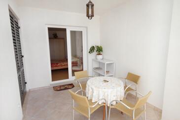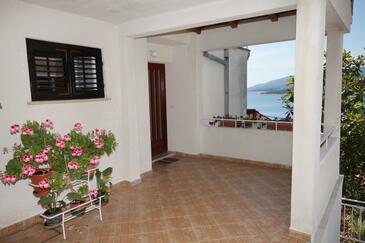 Ferienwohnung bietet Platz für 5 Gäste. Die Betten sind in Schlafzimmern, die es 2 gibt, innerhalb einer Gesamtfläche von 66m2, angeordnet. Die Gäste haben eine eigene Terrasse zur Verfügung, auf der sie in warmen Sommernächten genießen können. Das Apartment bietet Meerblick. Es ist erlaubt, Speisen auf dem Gemeinschafts-Grill vorzubereiten.